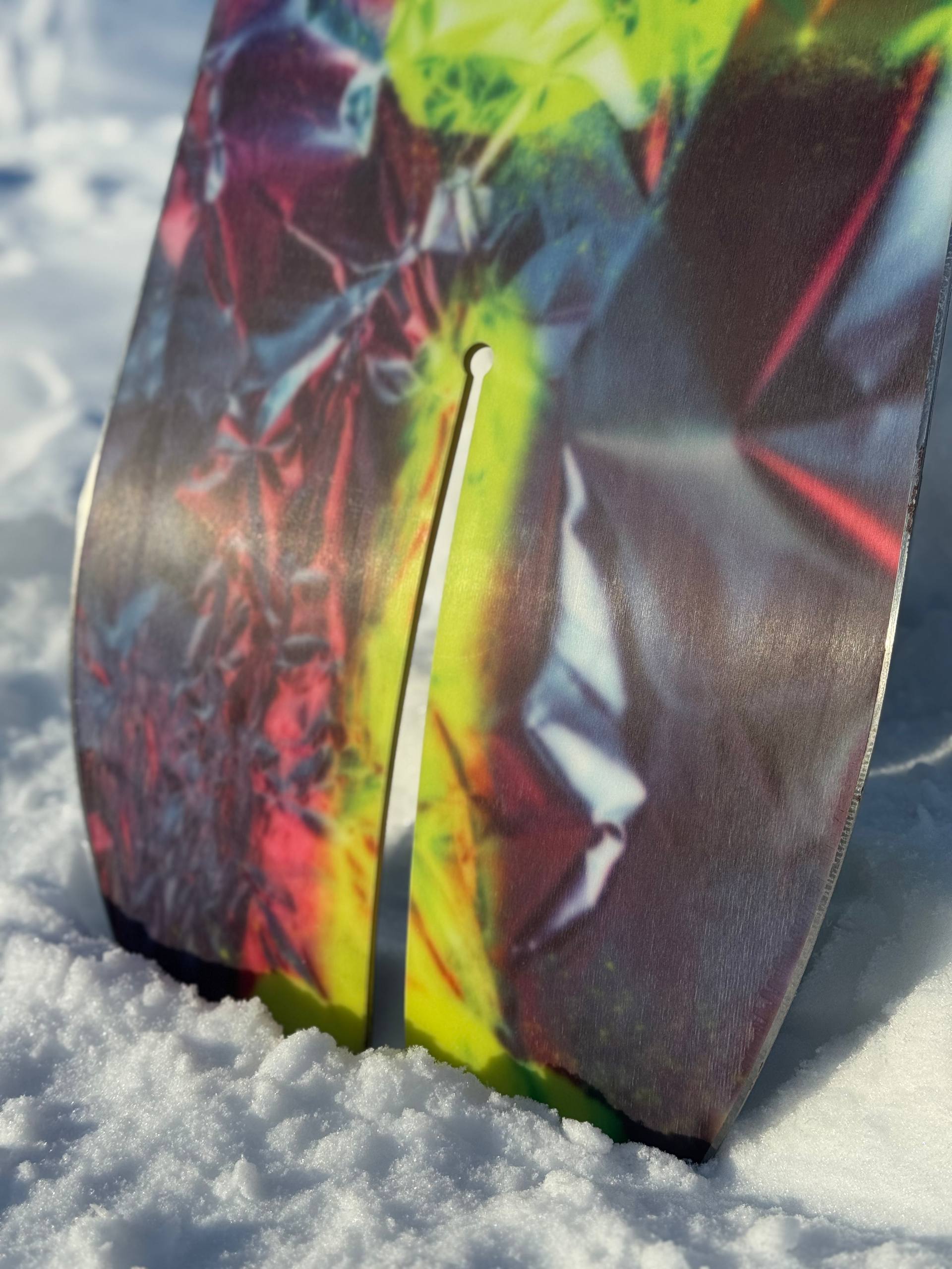 Ей действительно без разницы где ехать и как ехать, главное чтобы райдер мог так ехать. Ее хочется отнести к категории досок на каждый день с одной стороны, с другой стороны это очень послушный фрирайд снаряд. Изумительно держит наст или передутый, разбитый склон, а также хорошо ведет себя в глубоком снегу. Здесь есть дополнительные закладные для того, чтобы сместить крепы максимально назад и кайфовать в паудере. Хороший выбор, если хотите кататься весь отдых на одной доске. Однако, доска требовательна к райдеру и попросит вас работать. А если будете хорошо работать, вознаградит вас уникальными ощущениями от катания, она может быть очень разной.