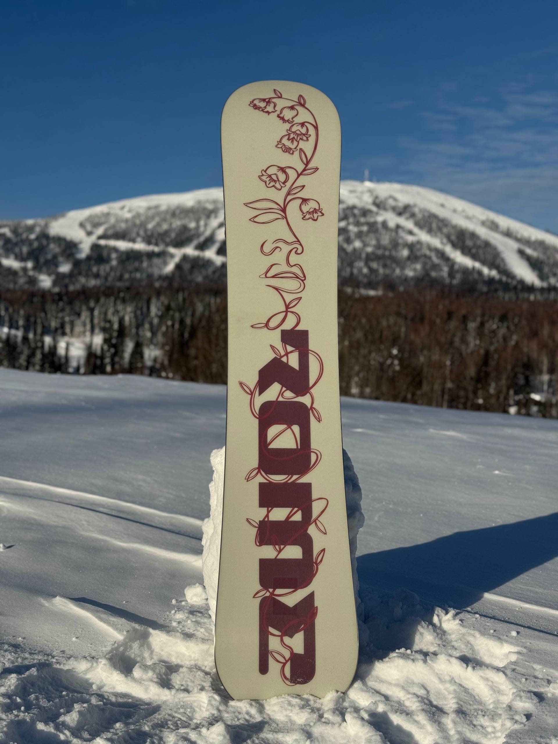 Хороший выбор для катания под прогноз в обильные снегопад. Очень хорошо всплывает, а так же очень хорошо держит на разбитом склоне и наст. Очень хорошо держит дугу на трассе, так что карвинг на ней катать приятно. Позиционируется как женская модель, но на самом деле универсальная и по дизайну и по стилю подходит всем. Стабильный, предсказуемый и понятный сноуборд.